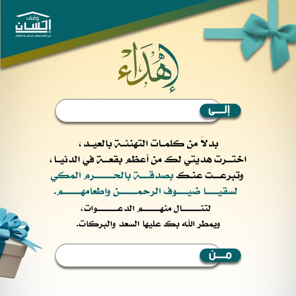 يمكنك الآن إهداء صدقة في الحرم المكي باسم من تحب من خلال مشروع تفطير الصائمين عبر منصة وقف إحسان، لتكون هدية مباركة تحمل الأجر والثواب في شهر رمضان الكريم.
