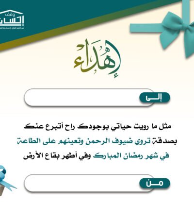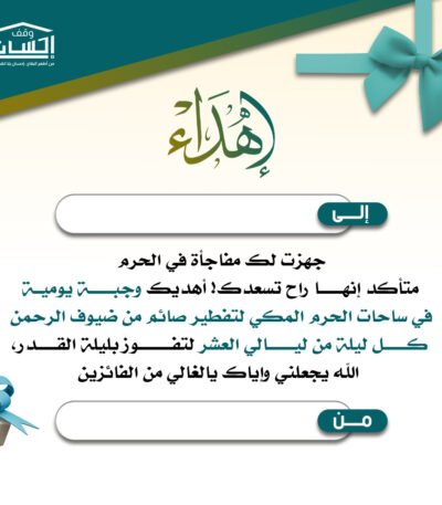 يمكنك الآن إهداء مشروع إفطار العشر الأواخر باسم من تحب عبر منصة وقف إحسان، لتكون صدقة مباركة تساهم في تفطير الصائمين ونيل الأجر العظيم في أفضل أيام شهر رمضان.